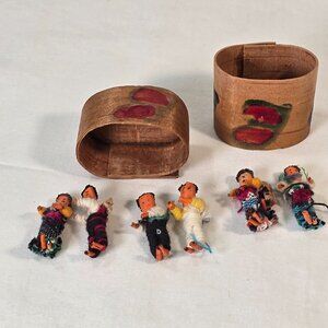 Vintage Guatemalan Worry Dolls Set Handcrafted Folk Art & Painted Box Miniature