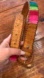 This beautiful handmade vintage belt features a vibrant woven textile insert with genuine leather backing and edges. It has a classic whipstitched trim and single-prong buckle.