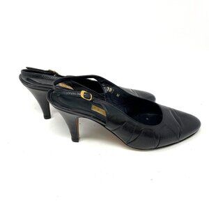 Vintage Gucci 1980's Slingbacks 3" Heel Textured Leather Accent Size 38.5