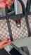 GG Plus Boston Bag, vintage, blue colorway, GG plus, interlocking G logo, Web accent, gold-tone hardware, silver-tone accent on center logo, single interior zip pocket, microfiber lining, zip top closure