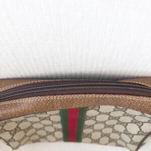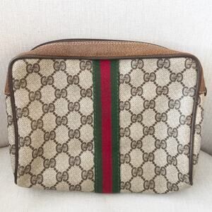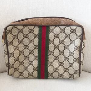 Vintage Gucci Bag Toiletry Clutch Brown GG Logo Tan Zip 80's