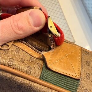 There is a tear on the leather shoulder tab, which can be professionally repaired if desired. Some collectors may prefer to leave it as-is to preserve the bag’s full vintage integrity. There is also a mild storage scent, as expected with items of this age.