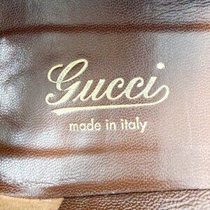 Pre‑owned with visible wear: soles are well-worn, leather trim has scuffs/creasing, but canvas is clean and the bamboo horsebit hardware remains intact and stylish. These are best suited for someone comfortable with character & patina in vintage wear.