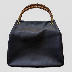 Vintage Gucci Bamboo Top Handle Bag Authentic – Black Leather, Peeling Interior