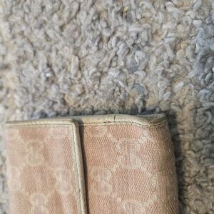 Vintage Gucci Bifold Wallet Canvas Authentic Pink. There are visible sign of wear and some stains around the edges. Please take very good look at all of the pictures for the exact condition and measurements. The interior is in very good condition
