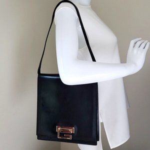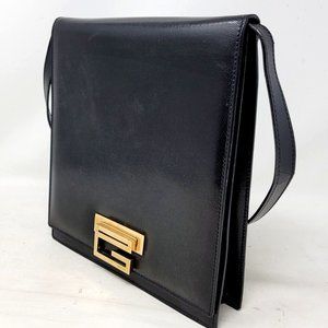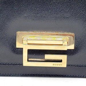 Vintage Gucci Black G Turn Lock Box Leather Shoulder Hand Bag Authentic