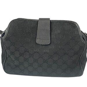 Vintage Gucci Black Monogram Shoulder Bag Italy Logo Strap Classic Old Money