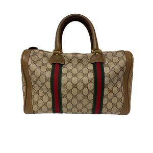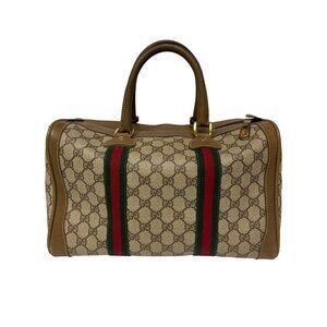 Vintage Gucci Boston Bag Logo Pattern Brown PVC Bag Handbag Sherryline