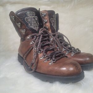 Vintage Gucci Brown Leather Combat Boots, Men's Size 7.5