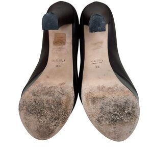 Exhibit an elegant style with this pair of Gucci pumps. These designer heels are crafted from quality leather for great comfort. They are set on durable soles and high heels for a sophisticated, trendy look.