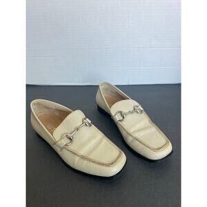 Vintage Gucci Cream Horsebit Pebble Leather Slip On Flat Loafer Driving Shoes 6B
