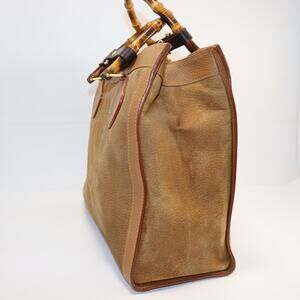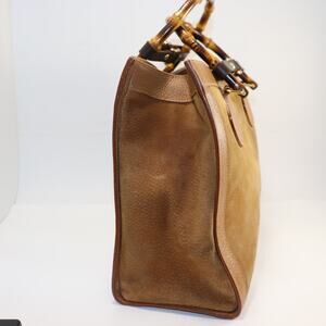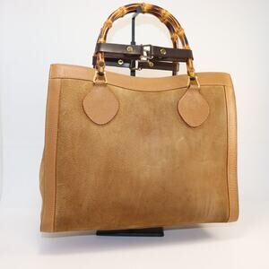 Vintage Gucci Diana Bamboo Handle Suede Tote Bag Camel Brown Refreshed