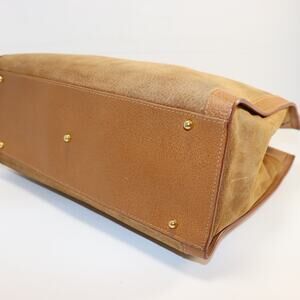 Condition: Good vintage condition. Light darkening on suede from age and use; refreshed leather trim and handles; interior clean and functional.