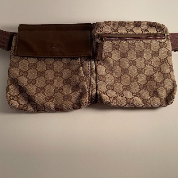 Vintage Canvas and leather gucci fanny pack. Super cute, casual and durable. Has a mark above zipper and wear and tear on leather. Please look closely at photos. Condition reflected in low price.