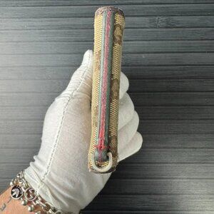 A true vintage treasure from Gucci — this authentic bifold wallet features the iconic GG canvas paired with the classic Sherry stripe detailing. Designed with a wallet chain hook for added security and style, it’s a functional piece steeped in heritage.