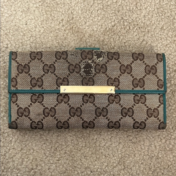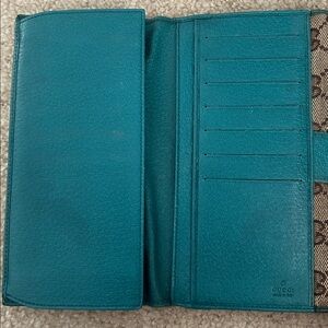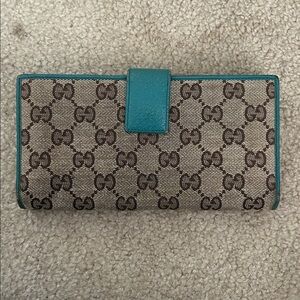Vintage Gucci GG Canvas Continental Wallet with Teal Leather Trim