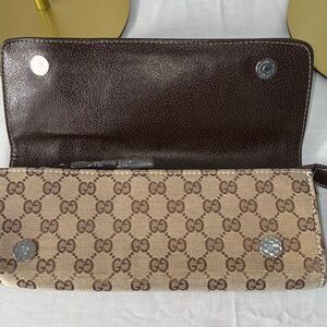 Vintage Gucci GG Monogram Canvas Bow Clutch Bag Brown Tan Y2K 90s Logo Designer