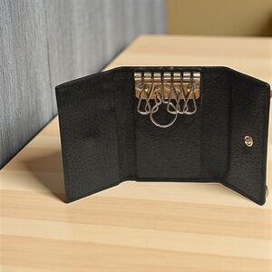 🖤 Vintage Gucci GG Monogram Key Holder – Black Leather & Canvas