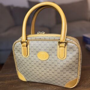 Vintage Gucci GG Monogram on Canvas Mini Boston Satchel with Leather