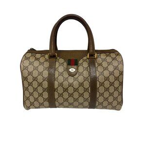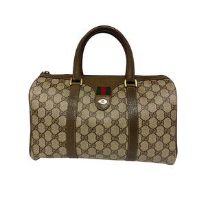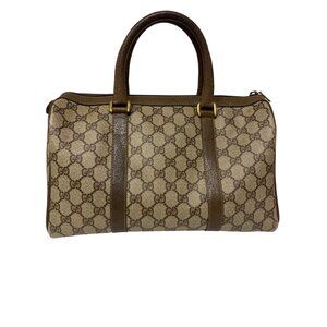 Vintage Gucci GG Supreme Boston Bag Sherry Line Handbag Logo PVC Leather
