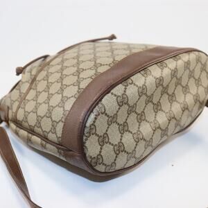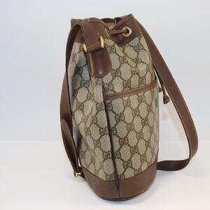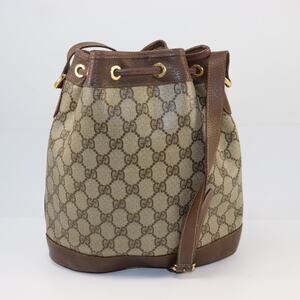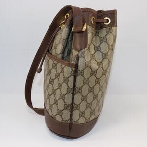 Vintage Gucci GG Supreme Bucket Bag Brown Leather Trim Italy