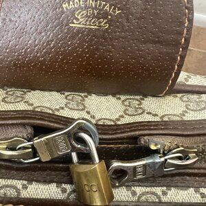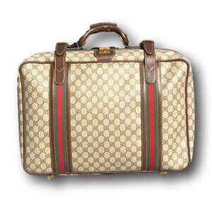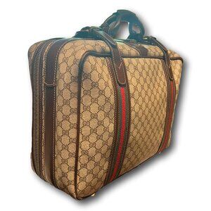 Vintage Gucci GG Supreme Suitcase Monogram Canvas & Leather Travel Bag Lock Keys