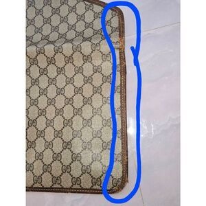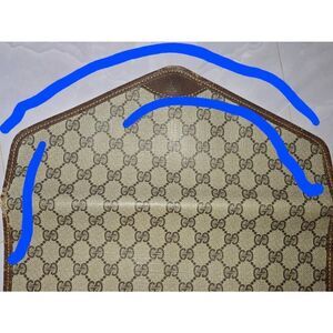 This Gucci Portfolio Pochette is the perfect accessory for any occasion. With its classic Gucci GG pattern and brown coated leather finish, it exudes style and sophistication. The bag features a snap closure and a large rectangular shape that makes it ideal for travel, casual outings or business meetings.