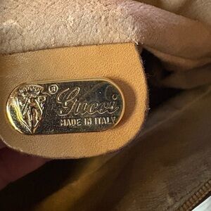 Stylish Gucci emblem with gold and tan design. Crafted in Italy. Vintage . Please look at all pictures for any callouts.