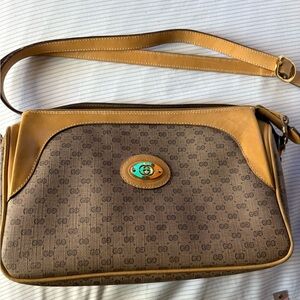 Vintage Gucci Gold and Tan Emblem Shoulder Bag