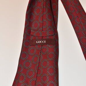 Vintage Gucci Italy Luxury Silk Burgundy Patterned Neck Tie Mens, offering a luxurious feel