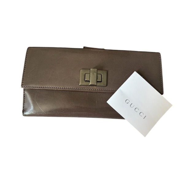 Vintage Gucci Long Wallet Womens Brown Leather Bi Fold