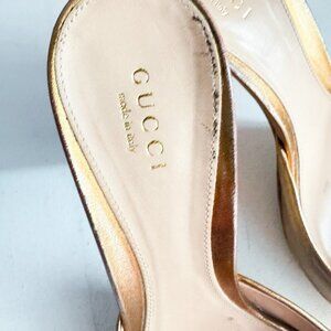Vintage Gucci Metallic Bronze Gold Horsebit Detail Peep Toe Heels 37.