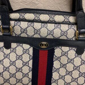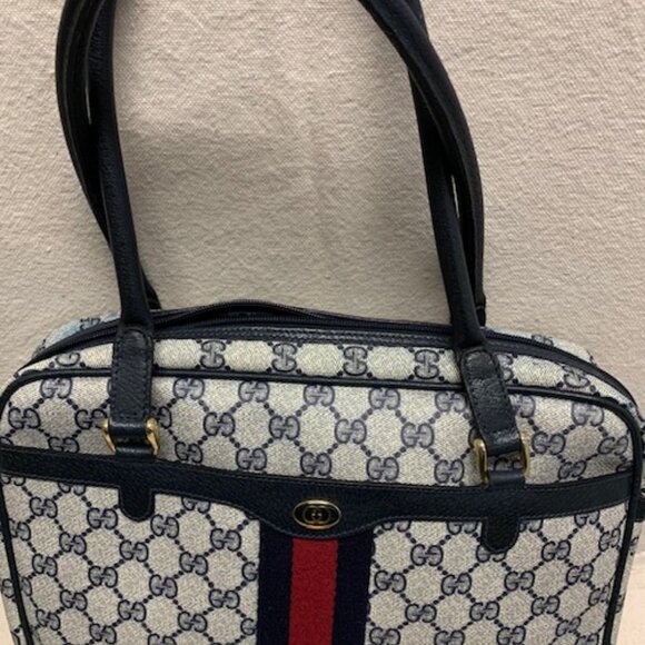 Vintage Gucci Navy GG Canvas Sherry Line Authentic Bag with COA