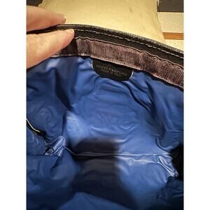 This vintage Gucci Parfums GG monogram clutch bag features a navy and red stripe design, adding a touch of sophistication to any outfit. Exterior is a mix or leather and coated canvas. Made of canvas material, this original clutch is versatile and suitable for adult unisex use. The iconic Gucci brand and classic monogram detailing make this accessory a timeless and stylish addition to any collection.