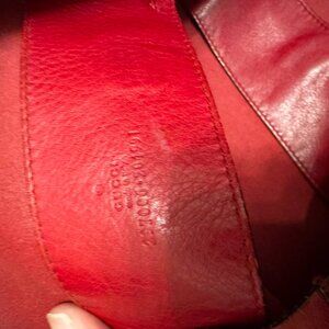 Vintage Gucci Park Avenue Horsebit Tote Bag in red. Beautiful soft leather has some ware and spots, pen marks on interior also the tassels have separated but can be removed. Gold tone hardware. Comes with matching pouch. Please see all photos as they are part of the description. Comes from smoke free home.