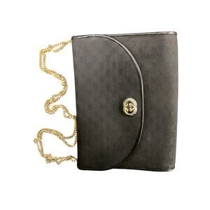 Vintage Gucci Purse Women’s One Size Canvas And Leather Trim Gold Chain Black