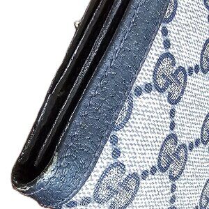 Vintage Gucci Sherry Line Blue Coated Canvas and Leather Slim Wallet 70's/80s