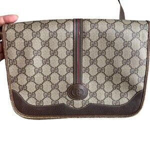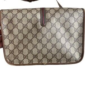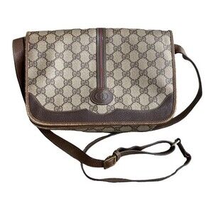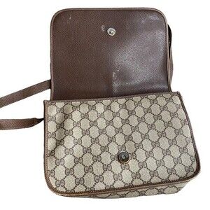 Vintage Gucci Shoulder Bag Flap Closure Classic Brown Monogram