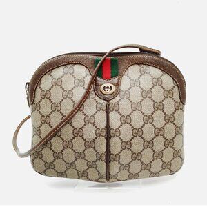 Vintage Gucci Shoulder/ Crossbody Bag Red & Green Sherry Line Brown
