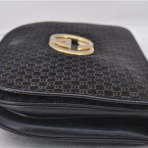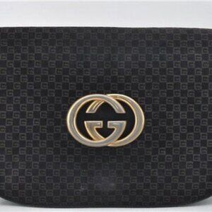 Vintage Gucci Square G Suede Flap Clutch Navy