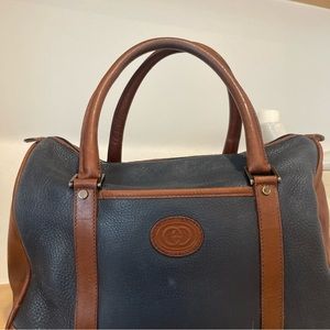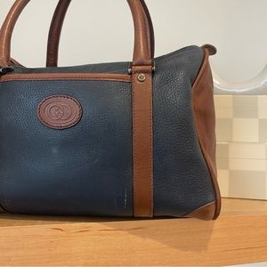 Vintage Gucci Blue Brown Leather Satchel Purse