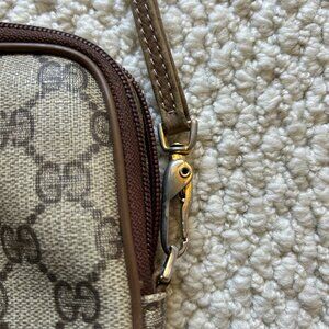 Authentic vintage Gucci Supreme clutch bag with removable shoulder strap, likely made in the 80s. Made from brown GG logo canvas, you can wear this as a shoulder bag or remove the strap and wear as a clutch bag. Fully-lined and fastens with a zipper.