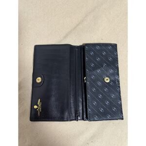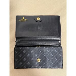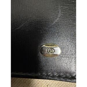 Vintage Gucci Wallet Womens One Size Black Leather Canvas Logo Trifold Italy