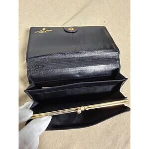 Item: Womens folding wallet with trifold card section and framed coin purse compartment.