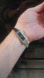 Gucci watch with black face. Stainless steel. There are a lot of little scratches on the straps and face. Other than that, it's in good condition.