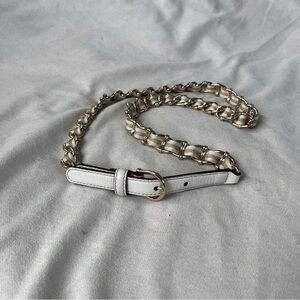 Vintage Gucci White Leather and Gold Chain Belt 1980’s