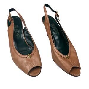 Elevate your vintage heel game with these Gucci heels. Featuring a brown leather design, these heels are perfect for women who want to add a touch of flair to their wardrobe.