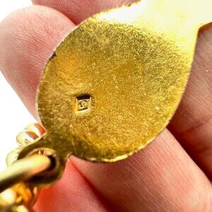Gorgeous enamel gold tone vintage gucci belt or can be worn as a necklace. Each enamel section is 1 3/4 inches long and 3/4 inches wide. Entire length is 36 inches and has a toggle clasp. It makes a lovely statement necklace or belt.