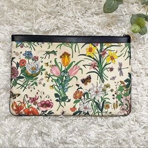 Vintage Gucci XXL Floral Canvas Clutch / Authentic / navy leather trim / zip close / Oversized / great for spring / Flat lay measurements: H: 10 1/2” L: 16”