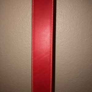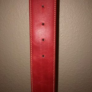 Vintage Gucci belt in red with gold buckle.